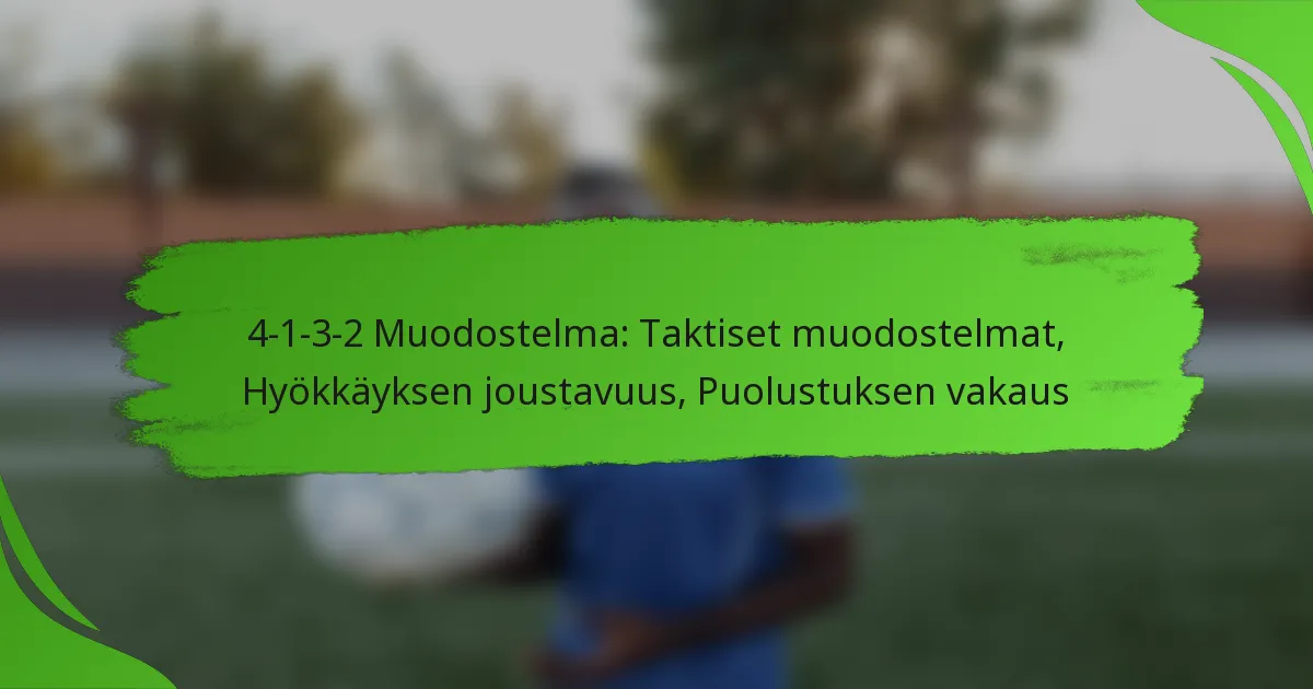 4-1-3-2 -muotoilu on jalkapallon taktinen asettelu, joka sisältää neljä puolustajaa, yhden puolustavan keskikenttäpelaajan, kolme keskikenttäpelaajaa ja kaksi hyökkääjää. Tämä muotoilu tarjoaa tasapainoisen lähestymistavan, joka mahdollistaa joukkueiden säilyttää puolustuksellisen vakauden samalla kun tuetaan hyökkäyspelejä.