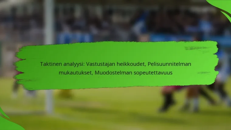 Taktiikan analyysi jalkapallossa kattaa keskeiset näkökohdat, kuten muodostelmuutokset, pelivaiheiden analyysin ja taktiset siirrot. Nämä elementit …