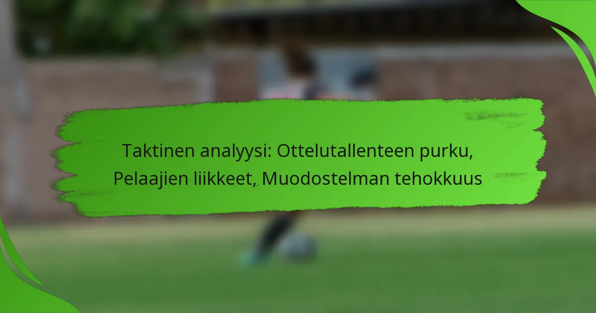 Taktinen analyysi urheilussa on olennaista pelin purkamiseksi, mikä mahdollistaa joukkueiden ymmärtää strategioitaan, pelaajien liikkeitä ja muodostelmien tehokkuutta. Analysoimalla ottelutallenteita, analyytikot voivat tunnistaa avainhetkiä ja arvioida, miten nämä elementit vaikuttavat pelin lopputulokseen. Tämä järjestelmällinen lähestymistapa ei ainoastaan auta suorituskyvyn parantamisessa, vaan myös varustaa joukkueet tarvittavilla näkemyksillä kilpailuedun saavuttamiseksi.
