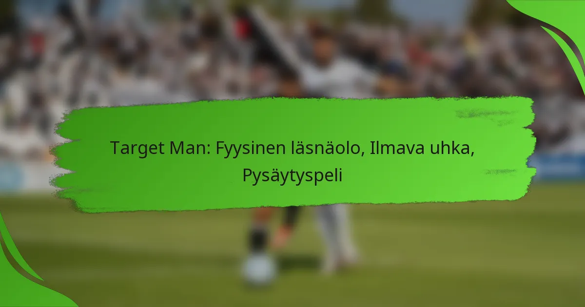 Target man jalkapallossa on hyökkääjä, joka tunnetaan fyysisestä läsnäolostaan, ilmailuosaamisestaan ja pelin pidosta. Tämä pelaaja toimii yleensä hyökkäyksen keskipisteenä, käyttäen kokoaan ja voimaansa voittaakseen pääpalloja ja säilyttääkseen pallonhallinnan, mikä mahdollistaa joukkuekavereiden etenemisen parempiin asemiin.